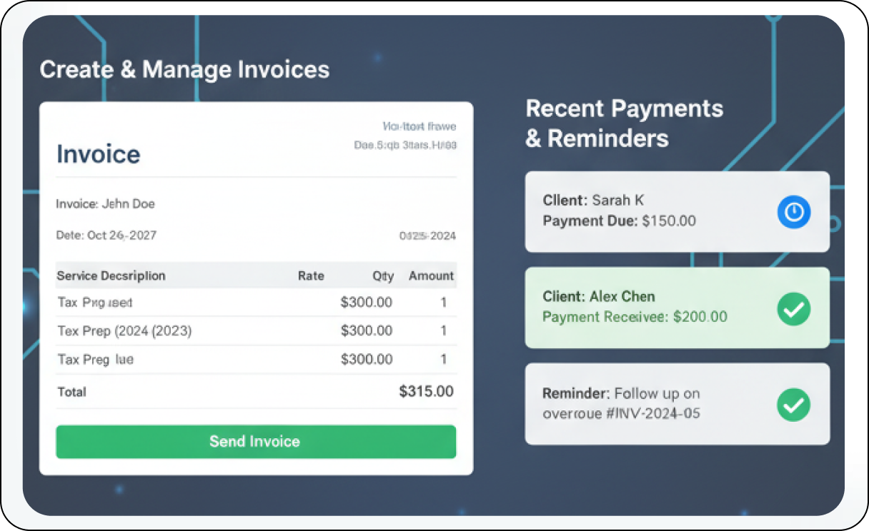 TAAX APP is your one-stop shop for success. Manage appointments, streamline workflows, connect with clients, and more – all from a single, user-friendly platform.