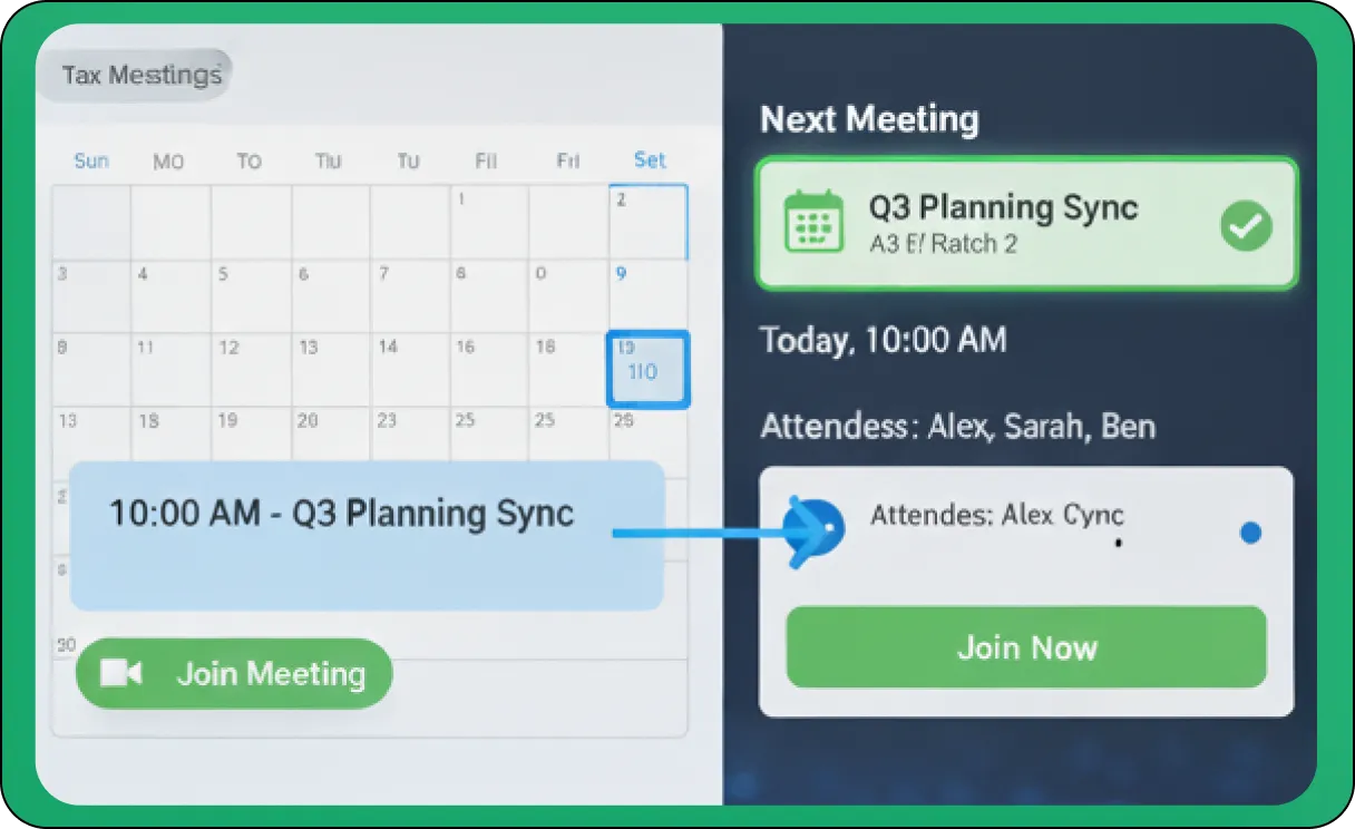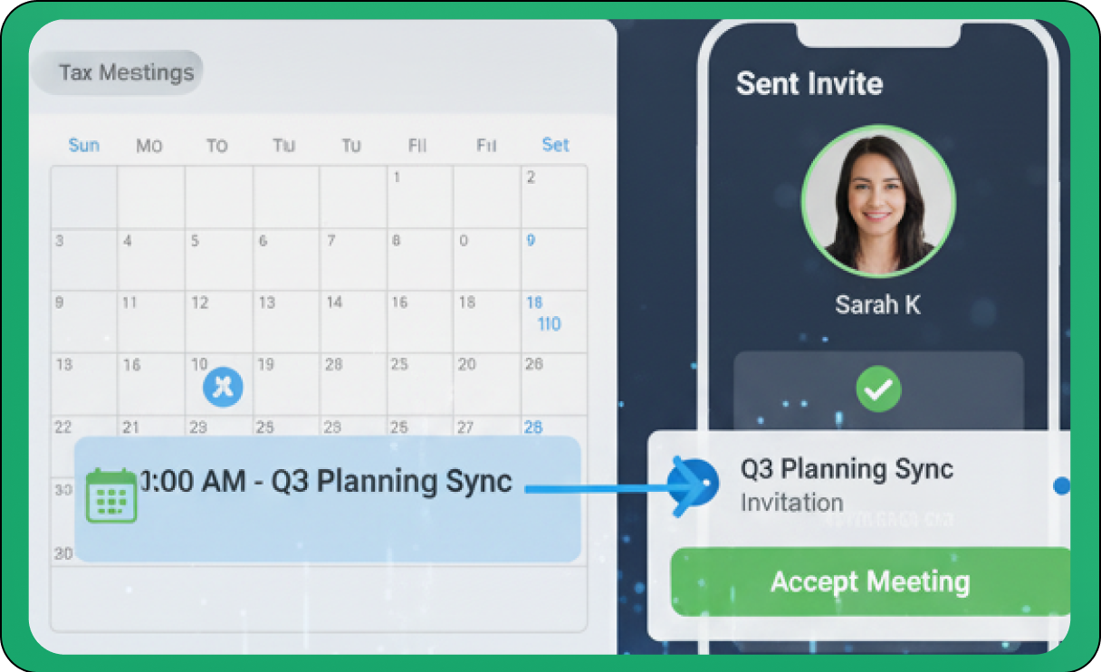 Direct Calendar Integration: Schedule video meetings directly from your TAAX App Pro calendar or effortlessly sync with any connected external calendar systems (e.g., Google Calendar, Outlook Calendar, Apple Calendar). This automatically creates meeting events with unique, secure links and all necessary details, eliminating manual entry and reducing scheduling conflicts.